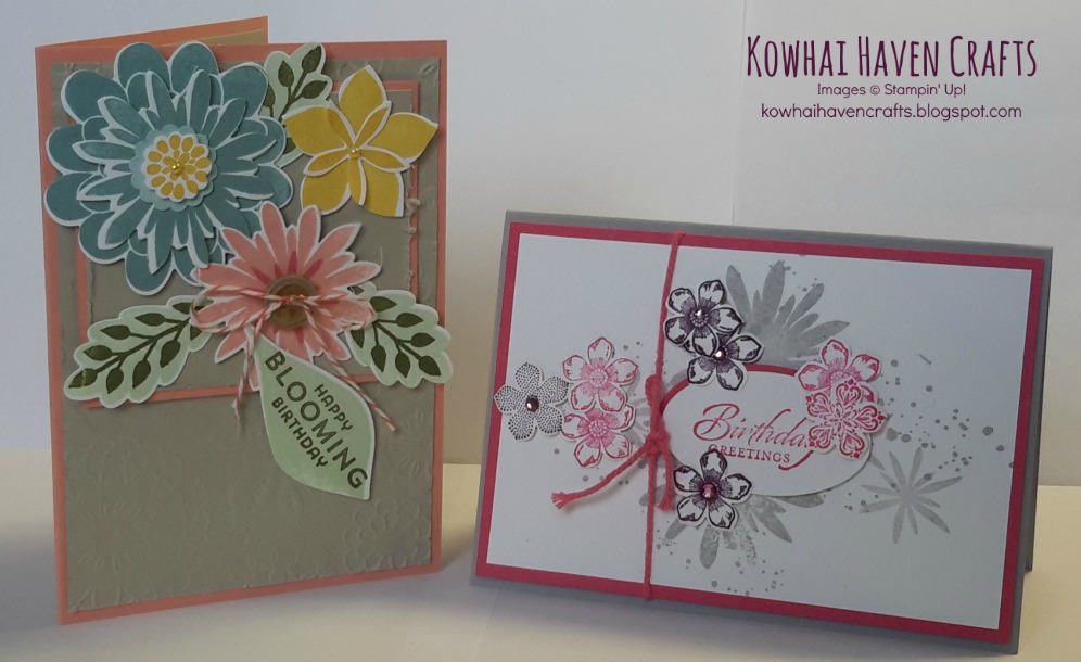 The Petite Petals Card showcases the Petite Petals punch and stamp set and I've also used the Flower Patch stamp set to give some background detail to the card: